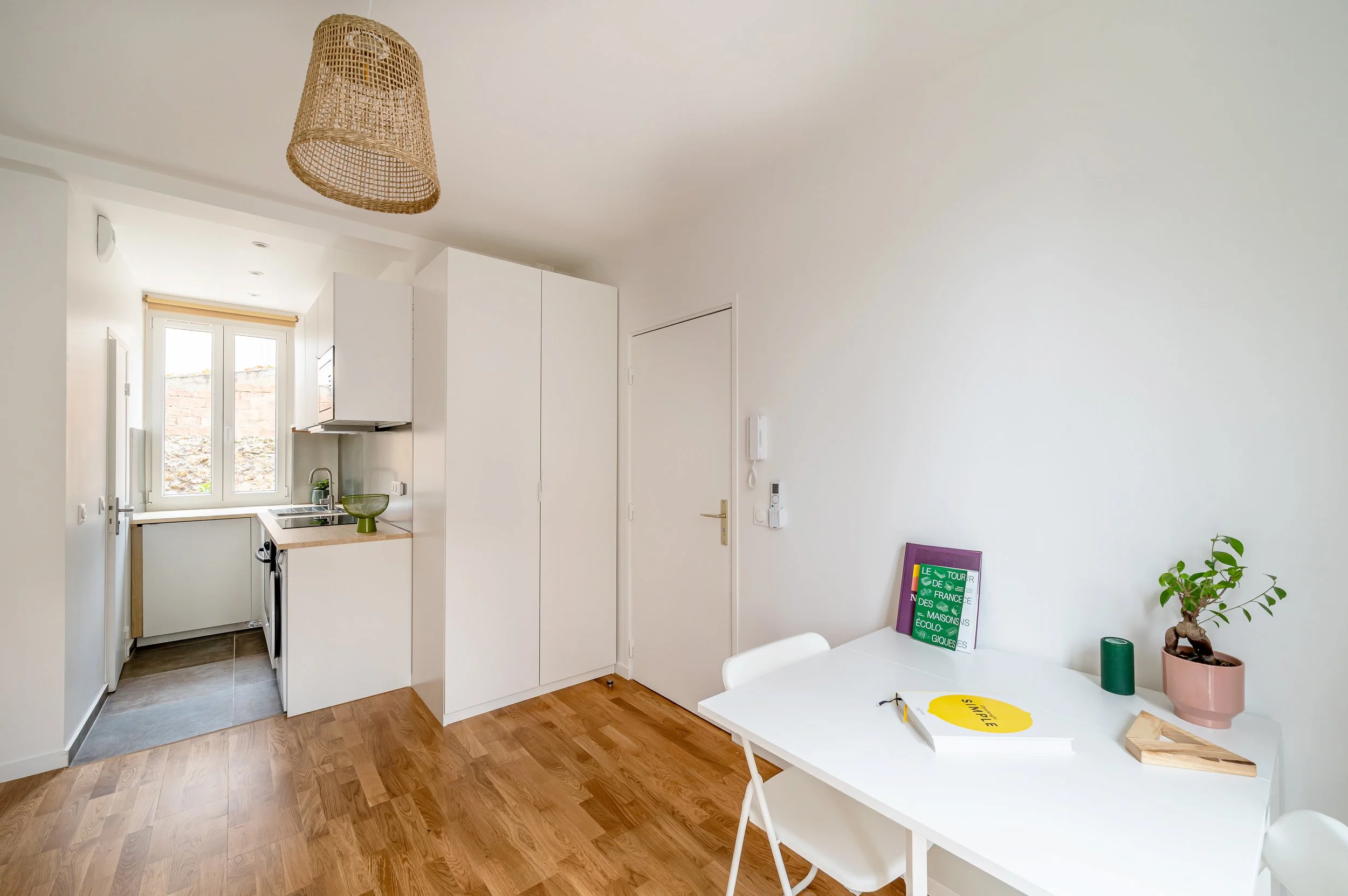 LE PROJET : Ce projet s’inscrit dans une rénovation totale d’un studio de 18 m², avec une attention particulière portée à la structure et à l’optimisation des espaces. Il comprend la reprise des planchers ainsi que la création d’une ouverture dans un mur porteur, au sein d’un immeuble de trois étages. L’enjeu du projet était d'intégrer une salle de bain ainsi qu’une cuisine et une pièce à vivre qui fait à la fois office de chambre. Le tout conçu pour offrir confort et fonctionnalité.